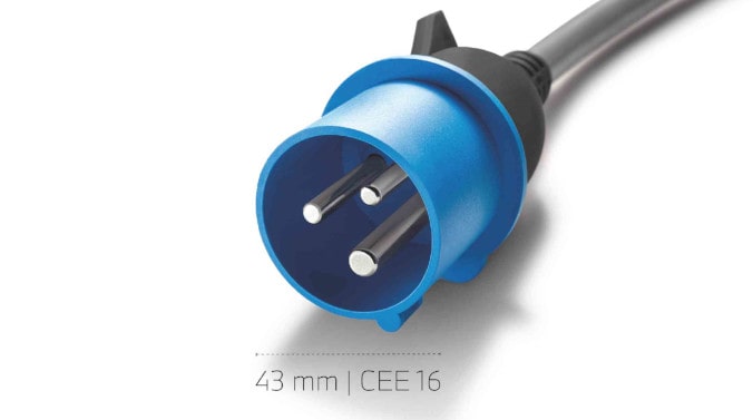 Für die Nutzung des Adapterkabels ist die Installation einer CEE-16-A-Industriesteckdose erforderlich.