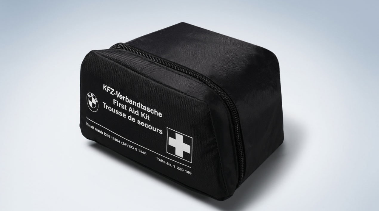 Das kompakte Erste-Hilfe-Set enthält alle wichtigen Utensilien für Sofortmaßnahmen an einem Unfallort. Es ist mit einem praktischen Klettverschluss an der Rückseite ausgestattet und dank eines dreiseitigen Reißverschlusses sehr gut zugänglich.