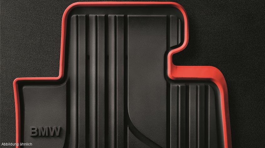 Die Fußmatten Allwetter verbinden zuverlässige Funktionalität mit perfekter Passform und souveränem BMW Design. Das wasserundurchlässige Material TPE (Thermoplastische Elastomere), die besondere Form und der hochgezogene Rand der Matte sorgen für ein sinnvolles Wassermanagement und verhindern somit eine Verschmutzung des Fahrzeuginnenraums. Jede Fußmatte wird passend zur Interieurwelt des jeweiligen BMW designt und unterstreicht so den Charakter des Fahrzeugs.