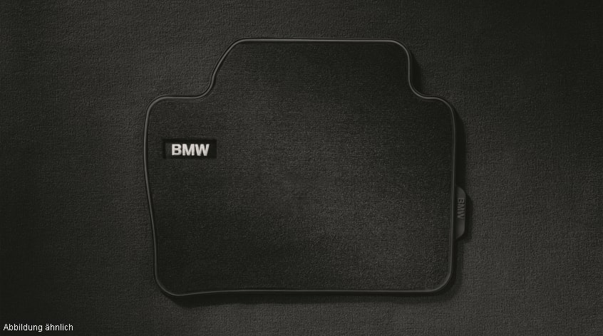 Hochwertige Textil-Veloursfussmatten mit dezenter BMW Wortmarke. Der zusätzlich aufgebrachte Trittschutz schont die Fußmatten gegen Abrieb durch Schuhabsätze. Durch die Einfassung und den Mattenrücken aus Gummi ist die Fußmatte sehr strapazierfähig. Die Farbe des Velours ist wie die Bodenverkleidung zu 100% in anthrazit gehalten. Zusätzlich ist die BMW Wortmarke sichtbar auf dem Textil aller vier Matten aufgebracht. Die BMW Wortmarke wird direkt eingefärbt und nicht nachträglich aufgedruckt.