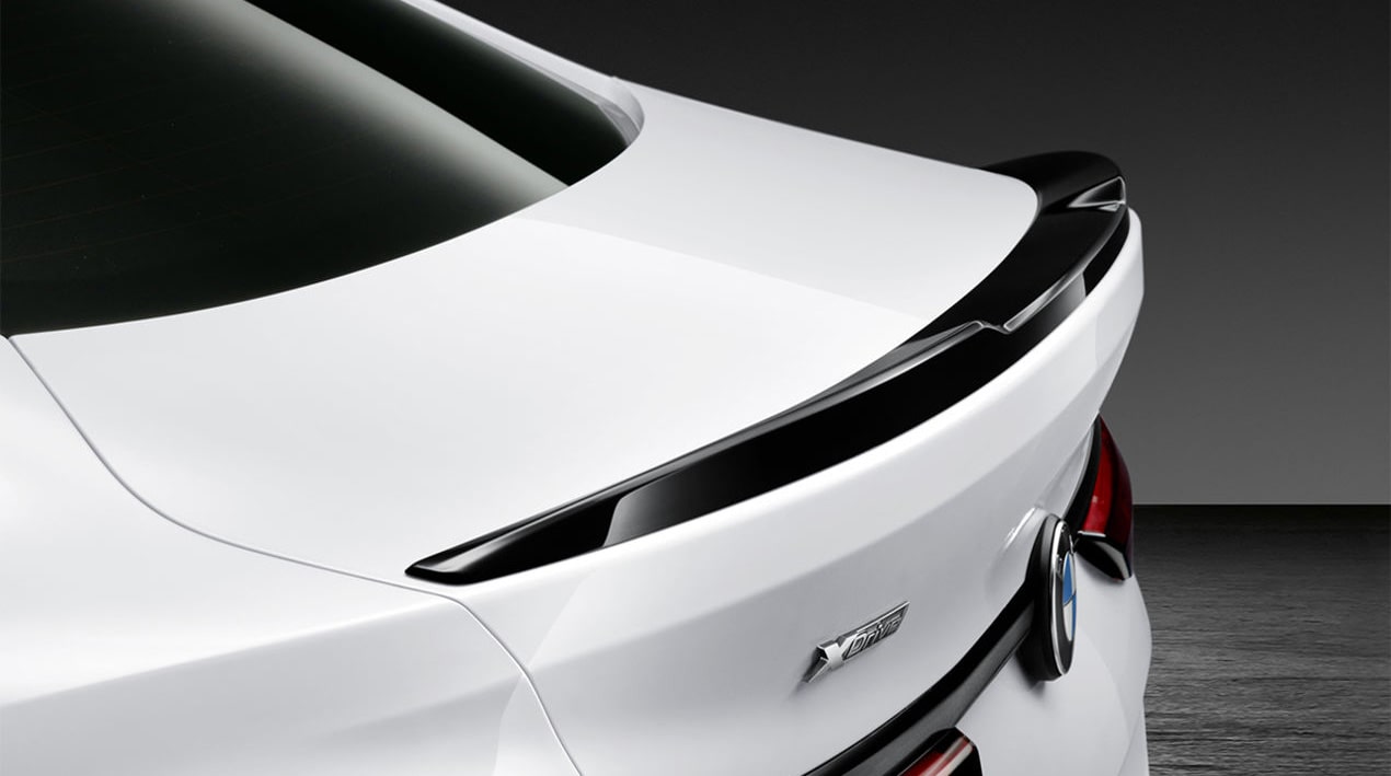 Ausdrucksstark: Der M Heckspoiler verstärkt das hochwertige, sportliche Erscheinungsbild des Fahrzeugs. Er sorgt für optimierte aerodynamische Werte und setzt markante, individuelle Akzente am Fahrzeugheck. Gefertigt aus besonders widerstandsfähigem ABS-Kunststoff, grundiert.
