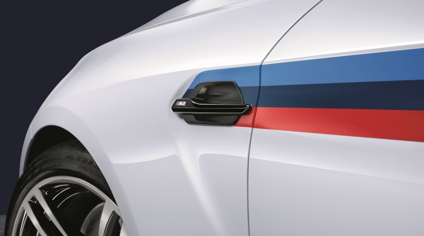 Das angebrachte, typische BMW M Logo in den BMW M Farben zieht zusätzliche Blicke auf sich.