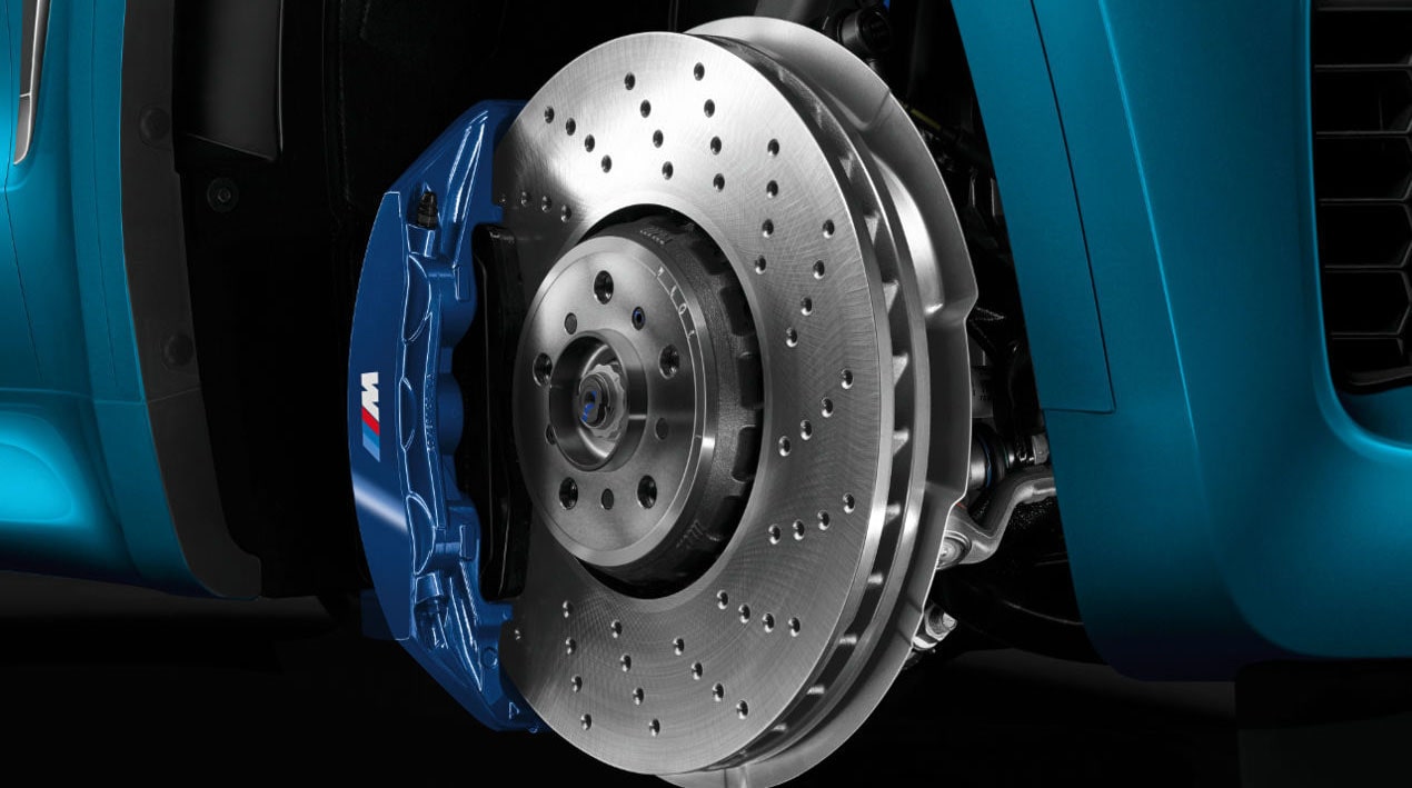 Technik trifft Optik: Der attraktive Look der innenbelüfteten M Performance Leichtbau-Sportbremsscheiben unterstreicht die Sportlichkeit des Fahrzeugs besonders bei offenen Raddesigns. Das Entstehen eines Wasserfilms zwischen Bremsbelag und Bremsscheibe wird durch Anlochungen auf dem Reibring vermindert.