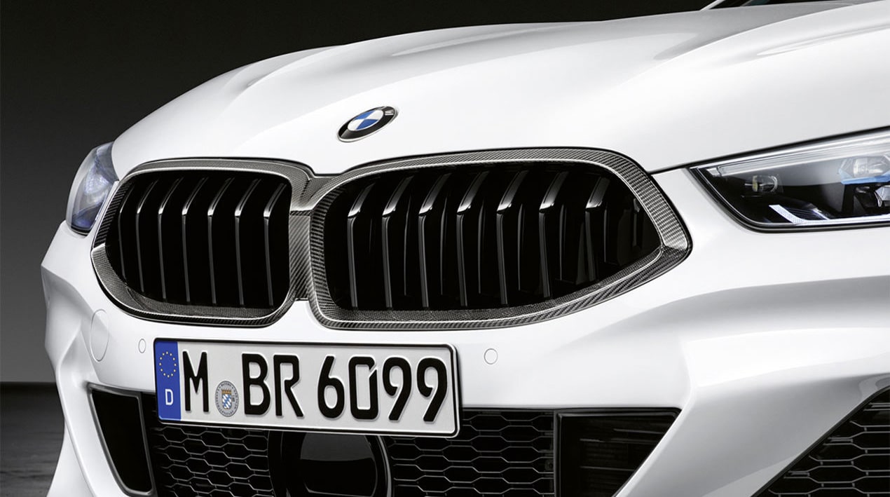 Charakter zeigen: Der Rahmen des M Performance Frontziergitters besteht aus hochwertigem, in aufwendiger Handarbeit gefertigtem Carbon, die Zierstreben bestehen aus sehr robustem Kunststoff. Die Geometrie des Frontziergitters ist identisch mit der Serienversion. Ein optisches Highlight an der Fahrzeugfront für einen besonders edlen, sportlich-individuellen Look.