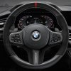 Gangwahlschalter neu interpretiert: Die ergonomische Form der Griffrückenschalen und ihre besondere Materialität sorgen für ein dynamisch-sportliches Fahrerlebnis. Der M Performance Wählhebel wird in zwei Varianten angeboten: mit Griffrückenschalen aus offenporigem 1K Carbongewebe oder aus Alcantara. In beiden Varianten wurde als besonderes Highlight das M Badge in Metallic auf der Oberseite angebracht.