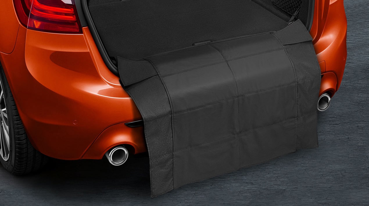 Die robuste BMW Schutzmatte schützt die Ladekante beim Be- und Entladen des Gepäckraums vor Kratzern und Schmutz. Sie wird mittels verschiebbarer Klet…