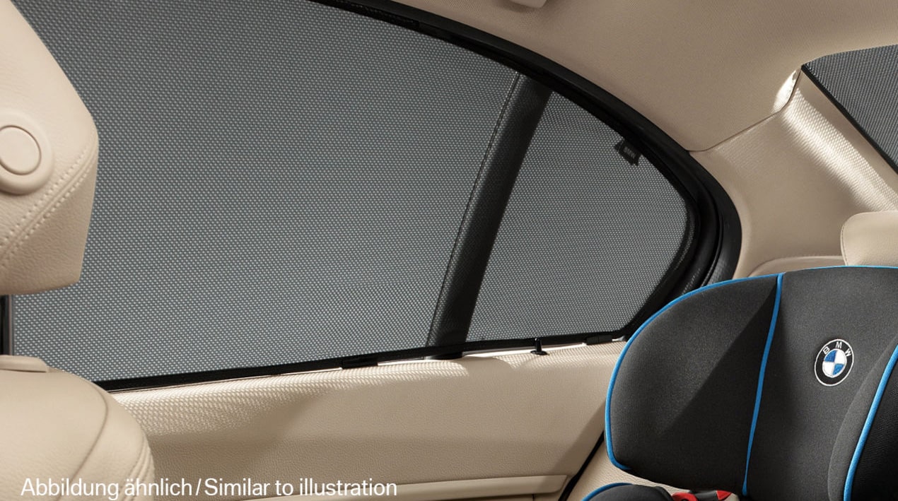 Der praktische BMW Sonnenschutz kann ganz einfach im Rahmen des Seitenfensters angebracht und damit auch bei geöffneter Scheibe verwendet werden. Als zuverlässiger Blendschutz ist er passgenau für die Fenster des Fahrzeugs gefertigt. So schützt er insbesondere Kinder optimal vor direkter Sonneneinstrahlung und hilft, die Temperatur im Fahrzeuginneren zu reduzieren.