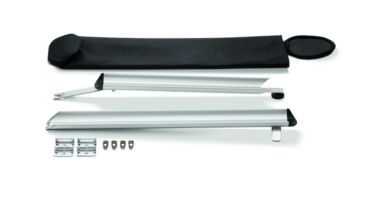 Die MINI Auffahrschiene ermöglicht eine leichtere Beladung des Fahrradheckträgers, da die Räder bequem auf den Träger geschoben werden können. Diese ist teilbar und kann in der mitgelieferten Tasche problemlos im Fahrzeug untergebracht werden. Verfügbar für den MINI Countryman (Baujahr ab 2010), Paceman.