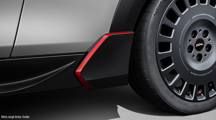 Mit den optionalen roten Akzentstreifen ziehen die neuen JCW Produkte die Aufmerksamkeit vom ersten Moment an auf sich.