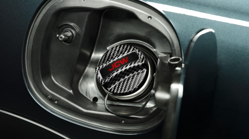 Die Tankverschlusskappe Carbon ist eine Abdeckkappe für den vorhandenen Tankverschluss, die durch ihre Fertigung aus echtem Carbon und das exklusive John Cooper Works Branding einen optischen Mehrwert erzeugt.