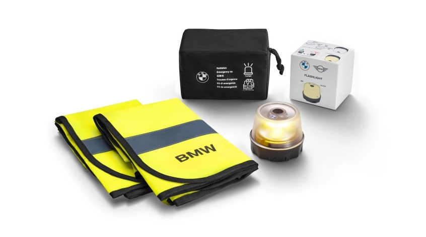 Die Notfalltasche mit Flashlight für alle BMW und MINI Fahrzeugmodelle beinhaltet zwei Warnwesten, ein Erste Hilfe Set und ein Flashlight (Blinkleuchte). Dieses Produkt erhöht deutlich die Sicherheit im Fall einer Panne oder eines Unfalls.
